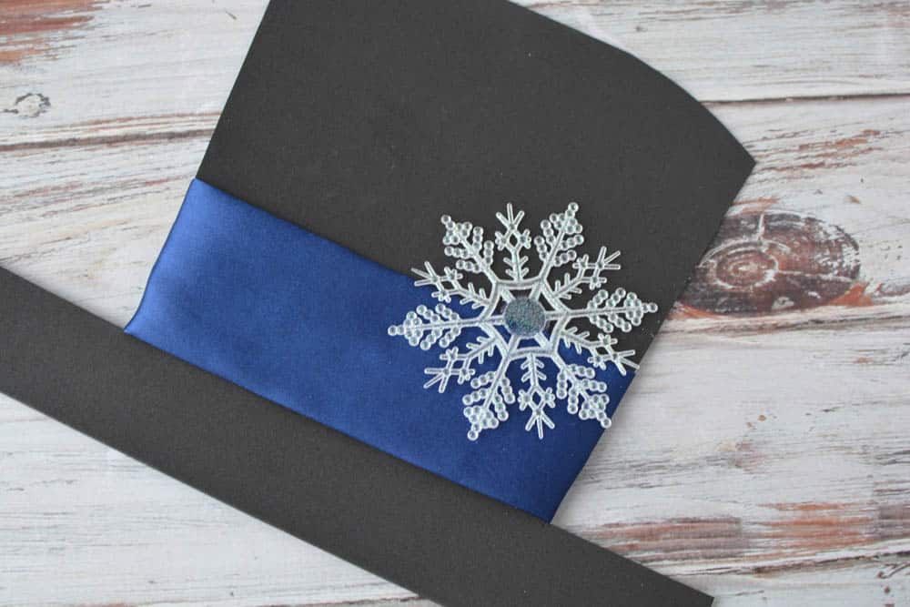 Affix a plastic snowflake onto the hat with hot glue. You can use another decoration or just skip this if you want.