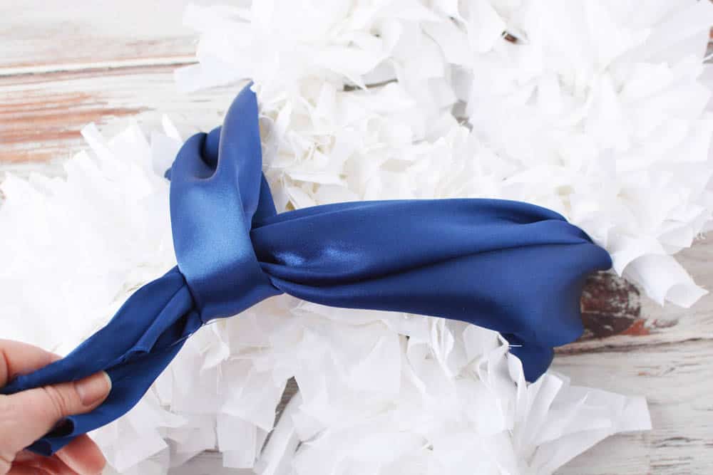 - Keep tieing and pushing the strips together so they create a nice, full wreath.