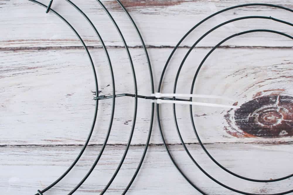 - Attach two wreath forms together with two zip ties. Trim the ends of the zip ties with diagonal cutters.