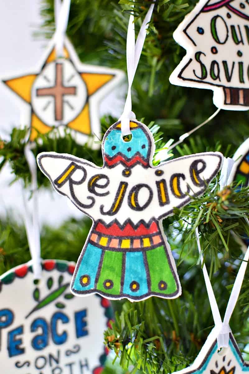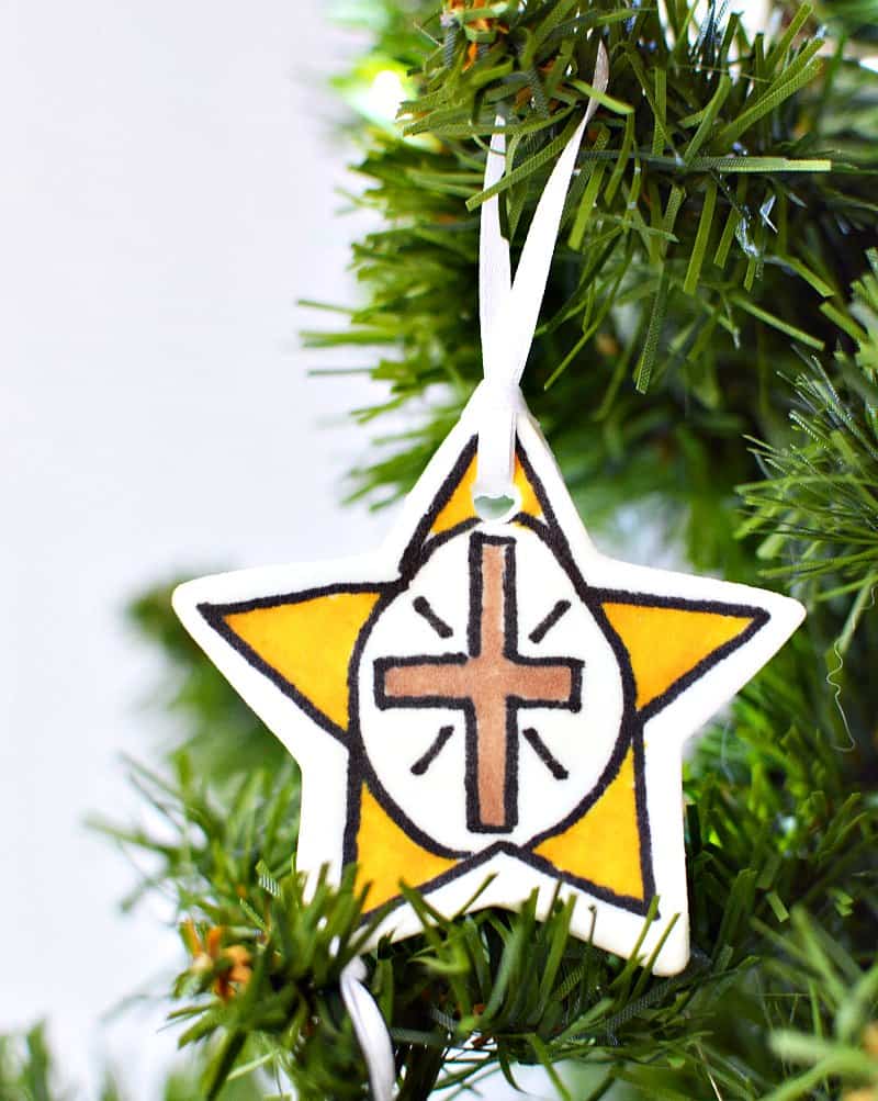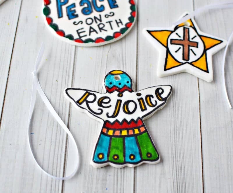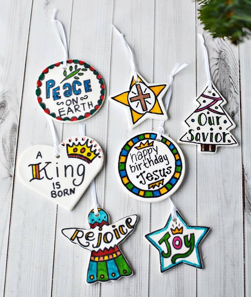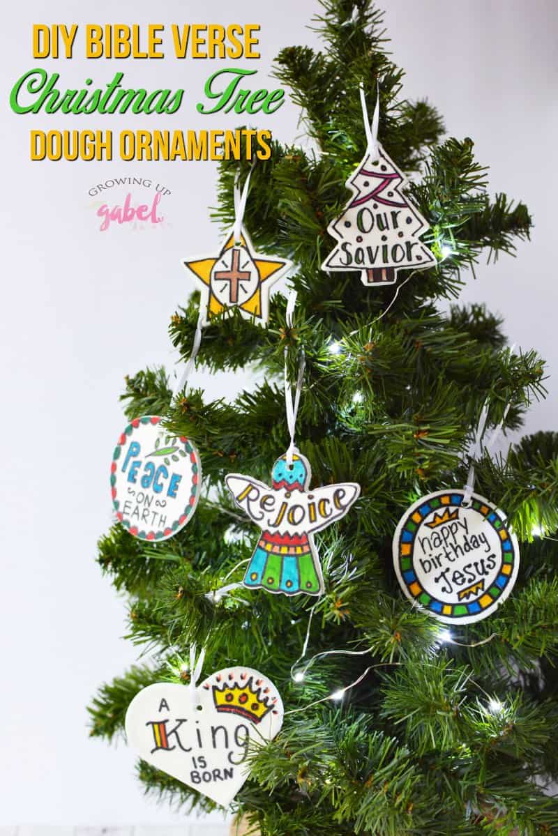 Christmas scripture verse ornaments are made with a baking soda dough, markers and ribbon. Easy to make, use your favorite Bible verses to decorate your Christmas tree.