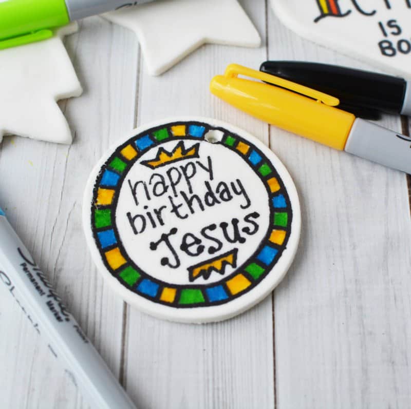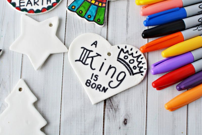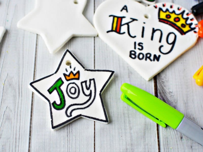 - The lighter/brighter sharpies worked better for this project because the dough really soaks up the marker pigment and made the dark colors quite dark. If necessary, you can test the marker color on the back of the ornaments, or cut a scrap piece to do this.