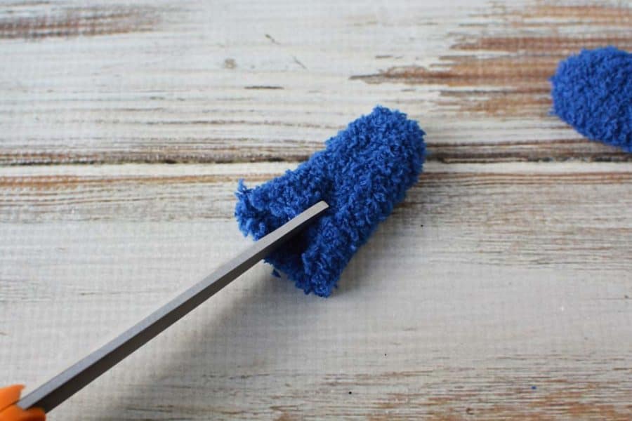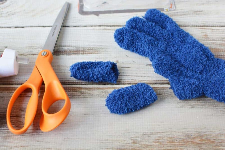 Use scissors to cut the fingers off of a fuzzy glove. Discard the glove and keep the fingers. You could try this knit gloves, too.