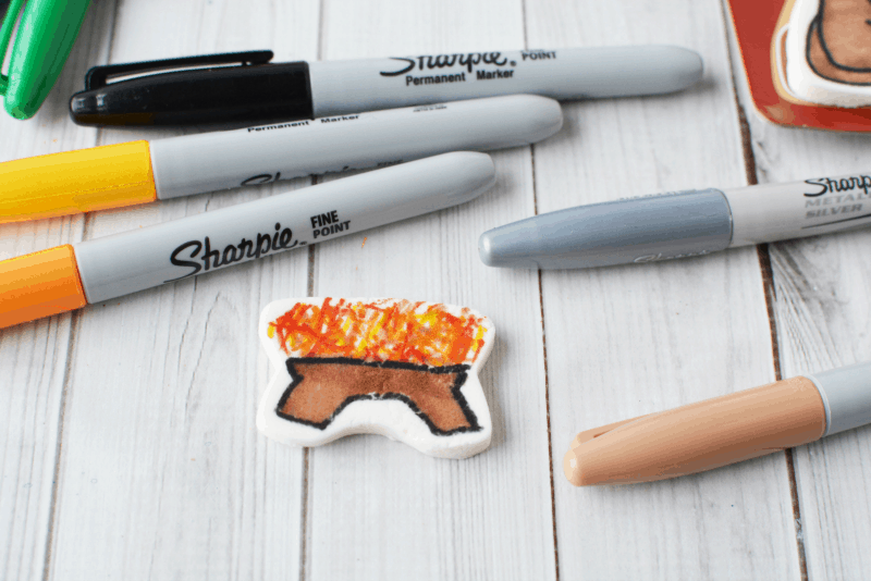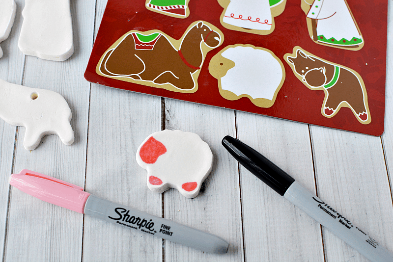 - The lighter/brighter sharpies worked better for this project because the dough really soaks up the marker pigment and made the dark colors quite dark. If necessary, you can test the marker color on the back of the ornaments, or cut a scrap piece to do this.