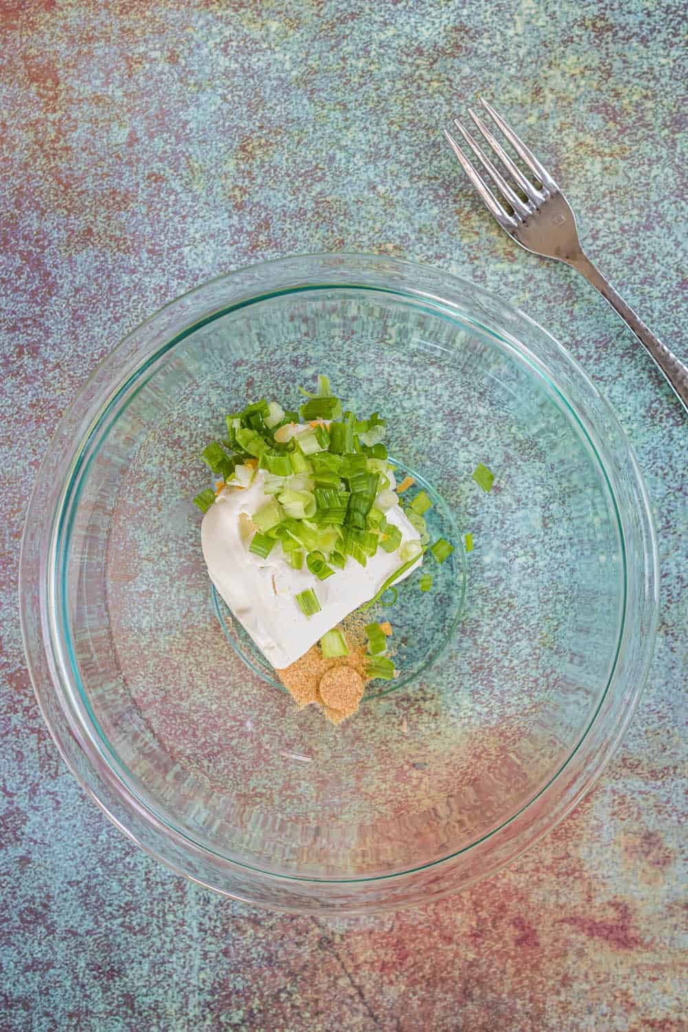 - Mash cream cheese in a small bowl with a fork until creamy.