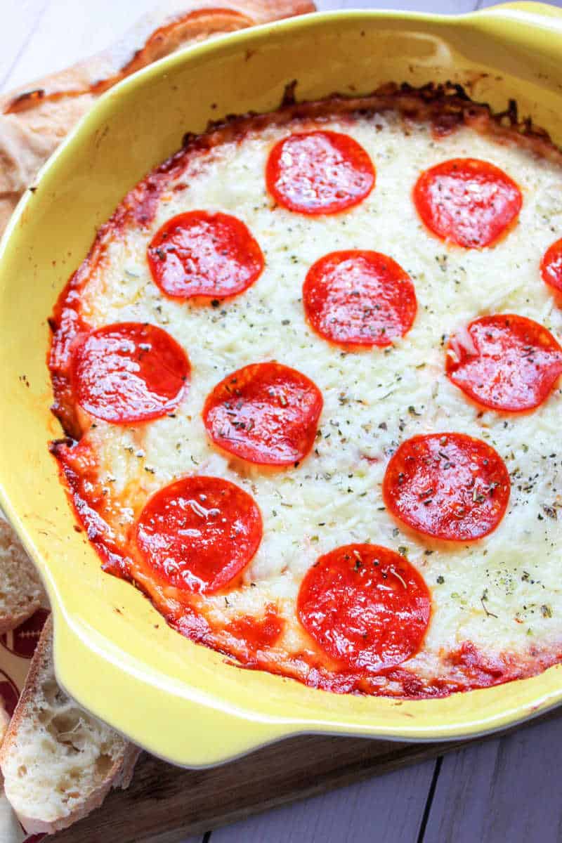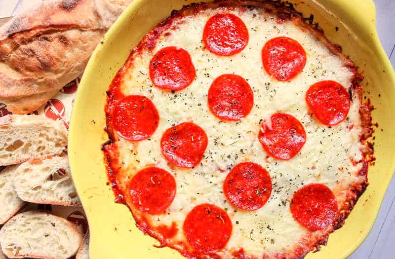 I can’t be the only mom who loves dips. When my kids were little I could make anything into a dip and they’d pretty eat it. Veggies and dip were always a lifesaver. This pizza dip is another family favorite. The cream cheese sounds questionable, but it adds a nice richness to make this a good hearty dip. Plus everyone loves pizza – even as a dip.