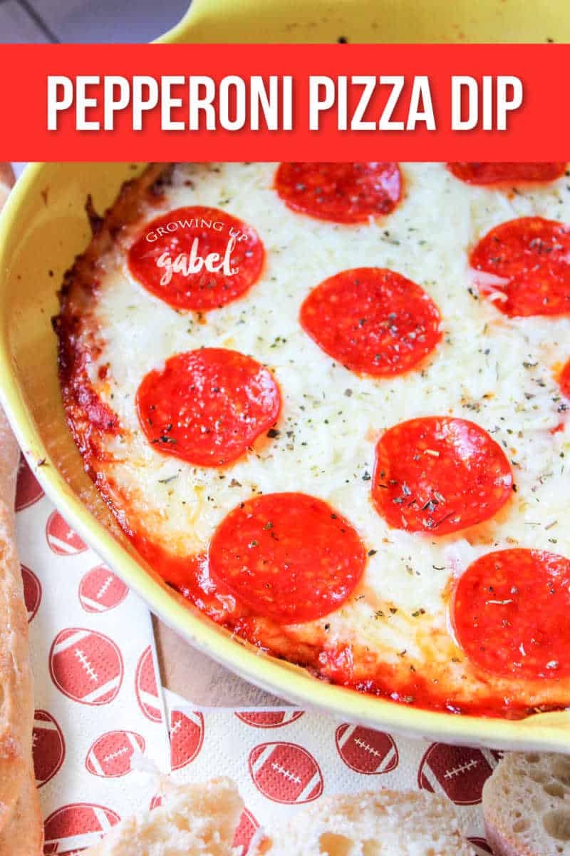 The entire family will love this easy pizza dip with cream cheese and pepperoni recipe. Made with cream cheese, mozzarella cheese, pizza sauce, and toppings. Use bread sticks, garlic bread, crackers or your favorite dipper and enjoy this yummy pizza dip.