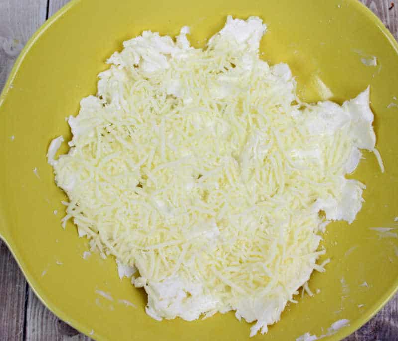 - Next, top the cream cheese with 1 cup of mozzarella cheese. You can also add Parmesan or Romano cheese to add a little flavor. We also like to use a pizza cheese mix.