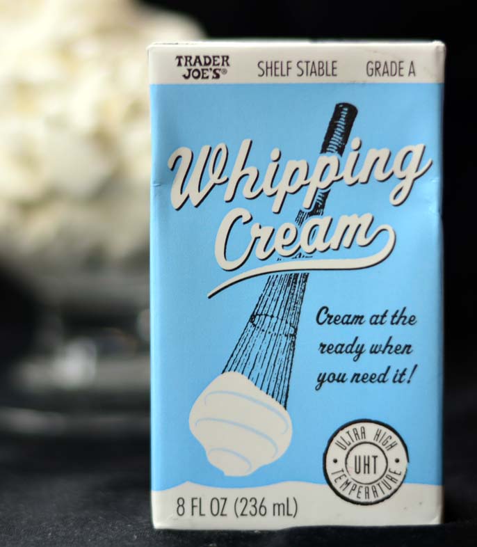 A few weeks ago, I stumbled upon this little gem at Trader Joe’s – shelf stable whipping cream in a Tetra Pak. Life as I know it has forever changed! I can now keep a few of these on hand for homemade whipped cream.
