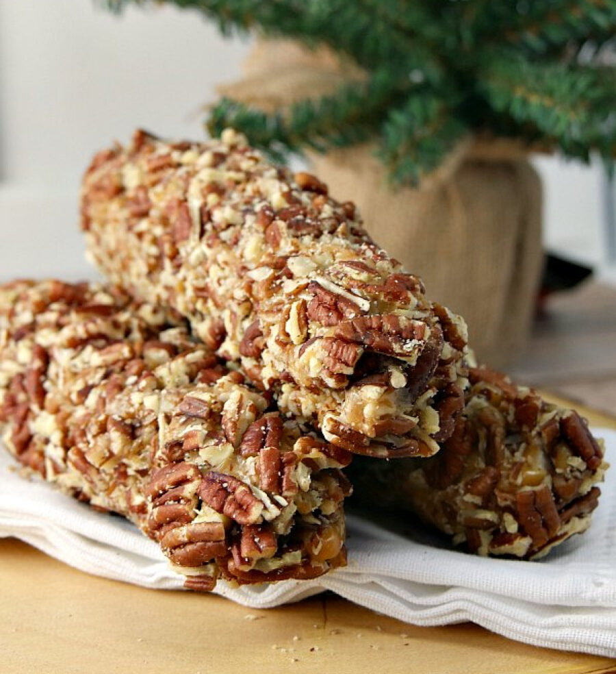 Indulge your sweet tooth and elevate your holiday dessert game with an irresistible salted caramel pecan log candy recipe. Spread joy and delight your taste buds by making these delectable confections in the comfort of your own kitchen. Pecan logs are an old-fashioned candy of a harmonious blend of rich caramel, crunchy pecans, and the perfect touch of salt. These candy logs are a mouthwatering treat that’s sure to become a cherished tradition for your family and friends.
