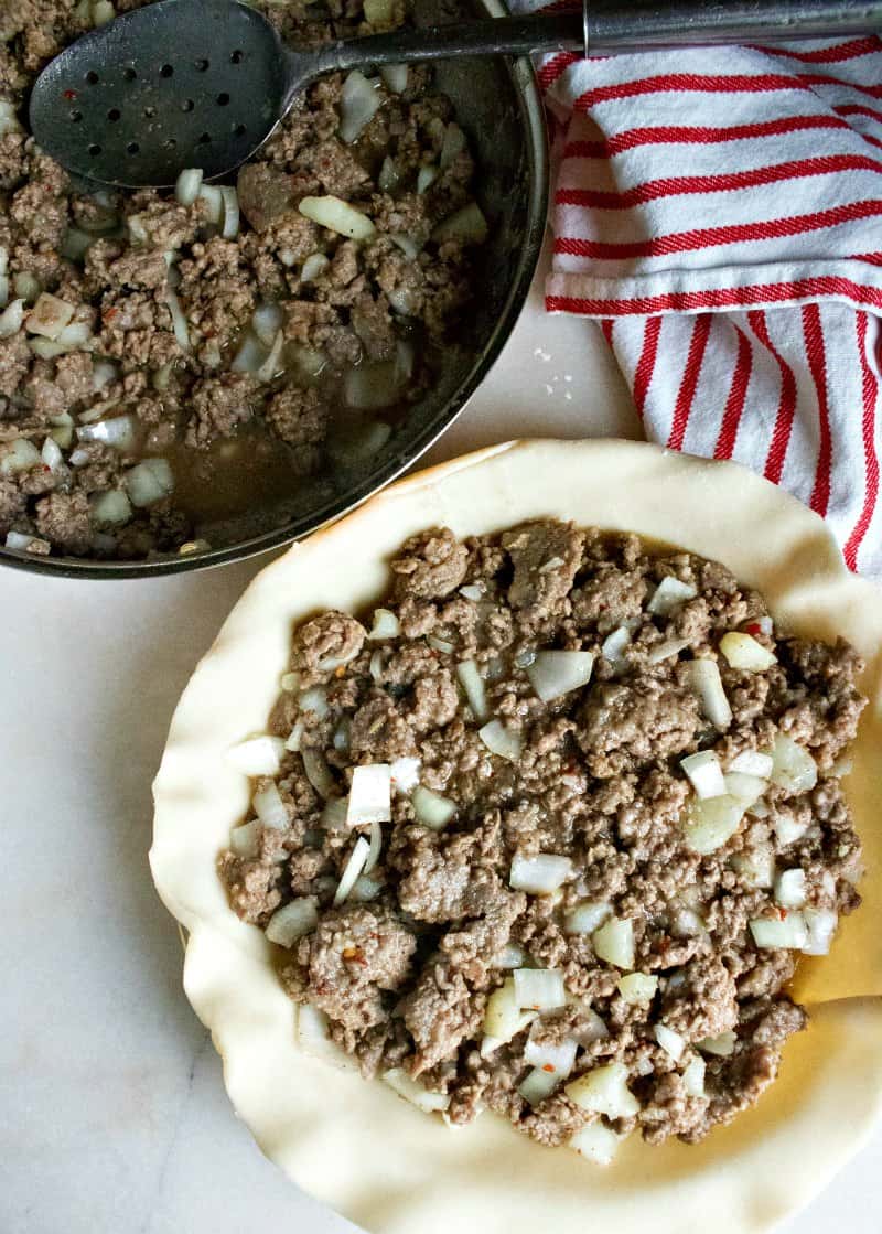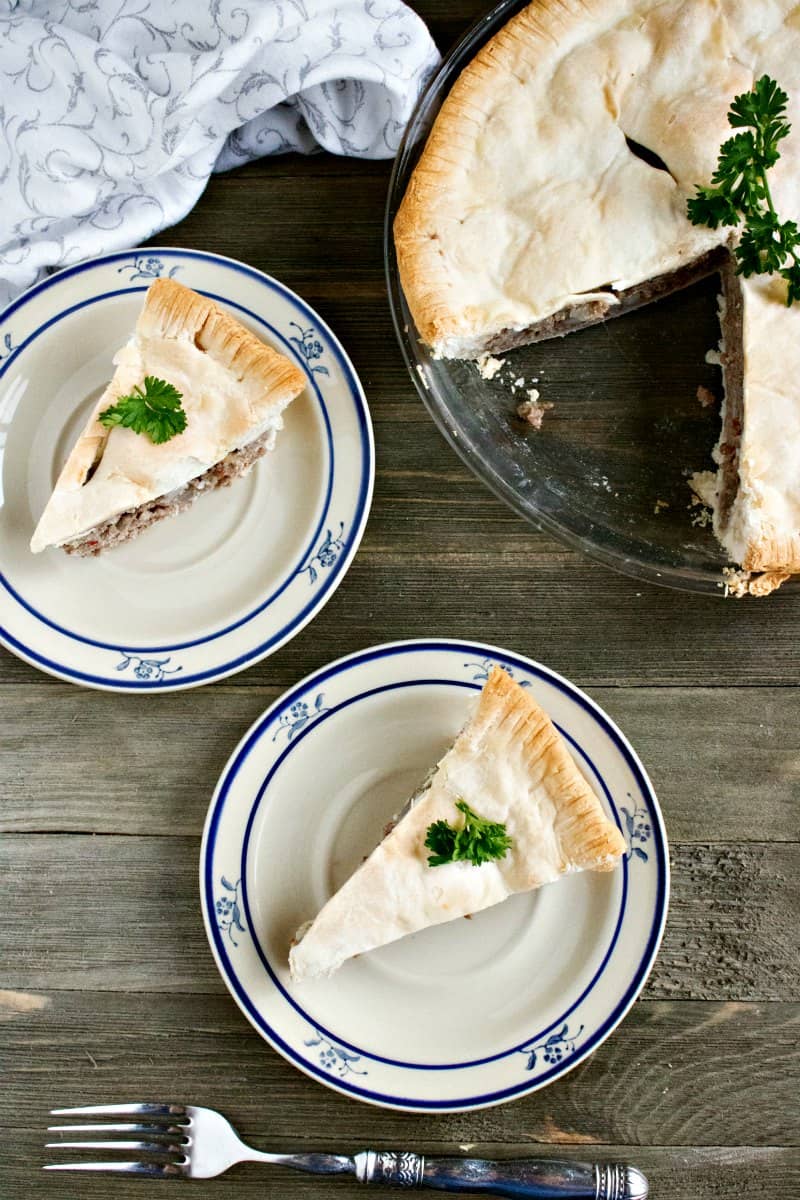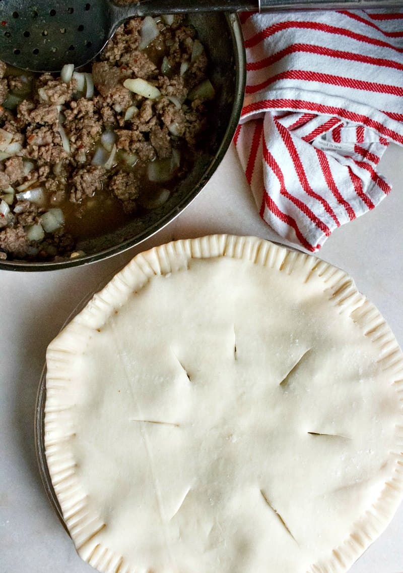 Made with ground beef and ground pork, meat pie is a simple, easy and filling dinner made with ground meat, potatoes, and pie crust.