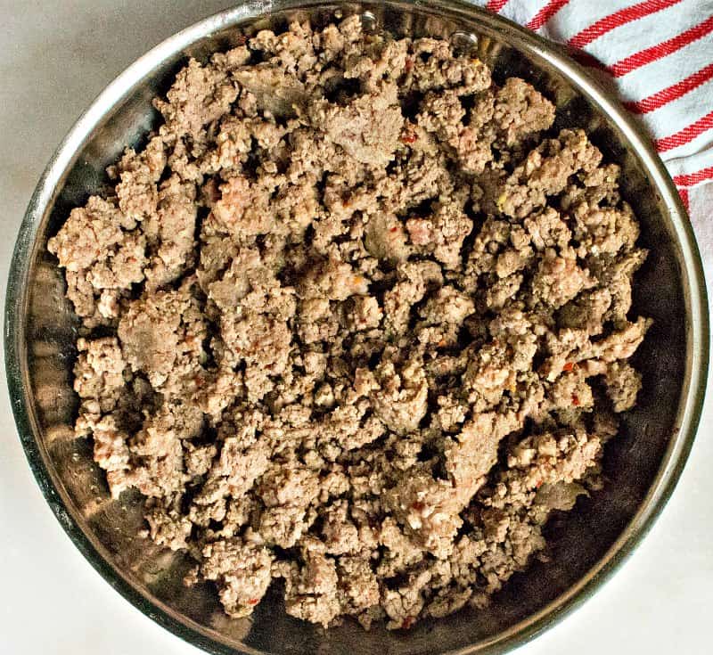 Cook over medium heat, stirring to crumble the meat and mix in the spices, until the meat is evenly browned.
