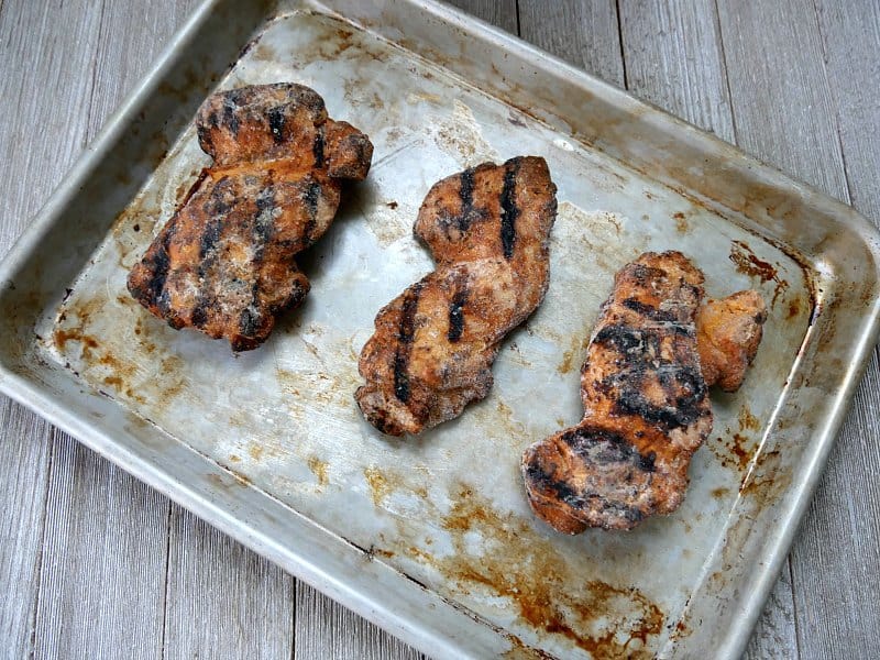 Cooked Perfect Grilled Chicken boneless chicken thighs can be cooked in the toaster oven or a microwave. I used a toaster oven and let them cook while the cabbage simmered. If you use a microwave, make the cabbage first and cook the chicken just before serving so it’s fresh and hot.