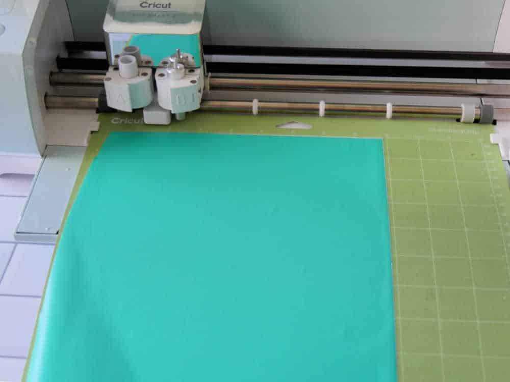 Put the first vinyl color on a standard cutting mat and load it into your Cricut machine. Hit continue, and Design Space will connect via Bluetooth to your machine. Once it is ready, hit the Cricut C on your machine to begin cutting.