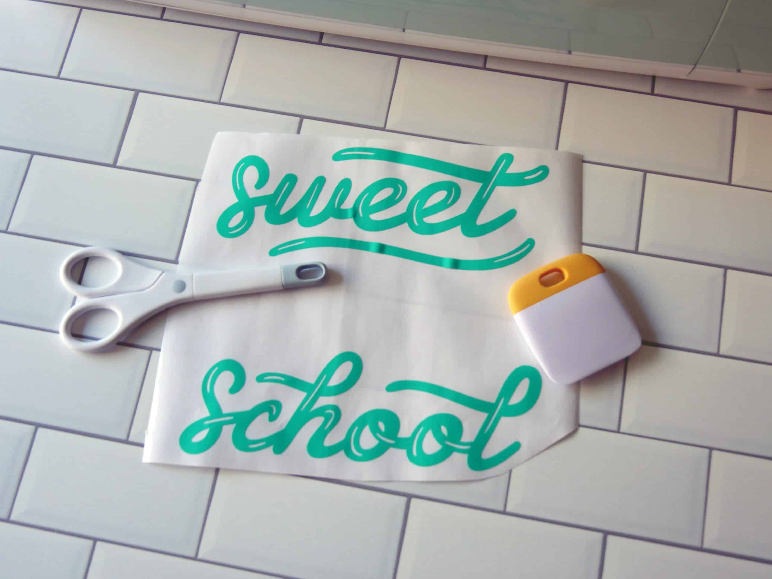 Once both sets of words are cut, it’s time to weed. For tips on weeding check out A Beginner Guide to Crafting with the Cricut Explore Air 2. When weeding the words “school” and “sweet”, keep the words together on the backing for spacing.