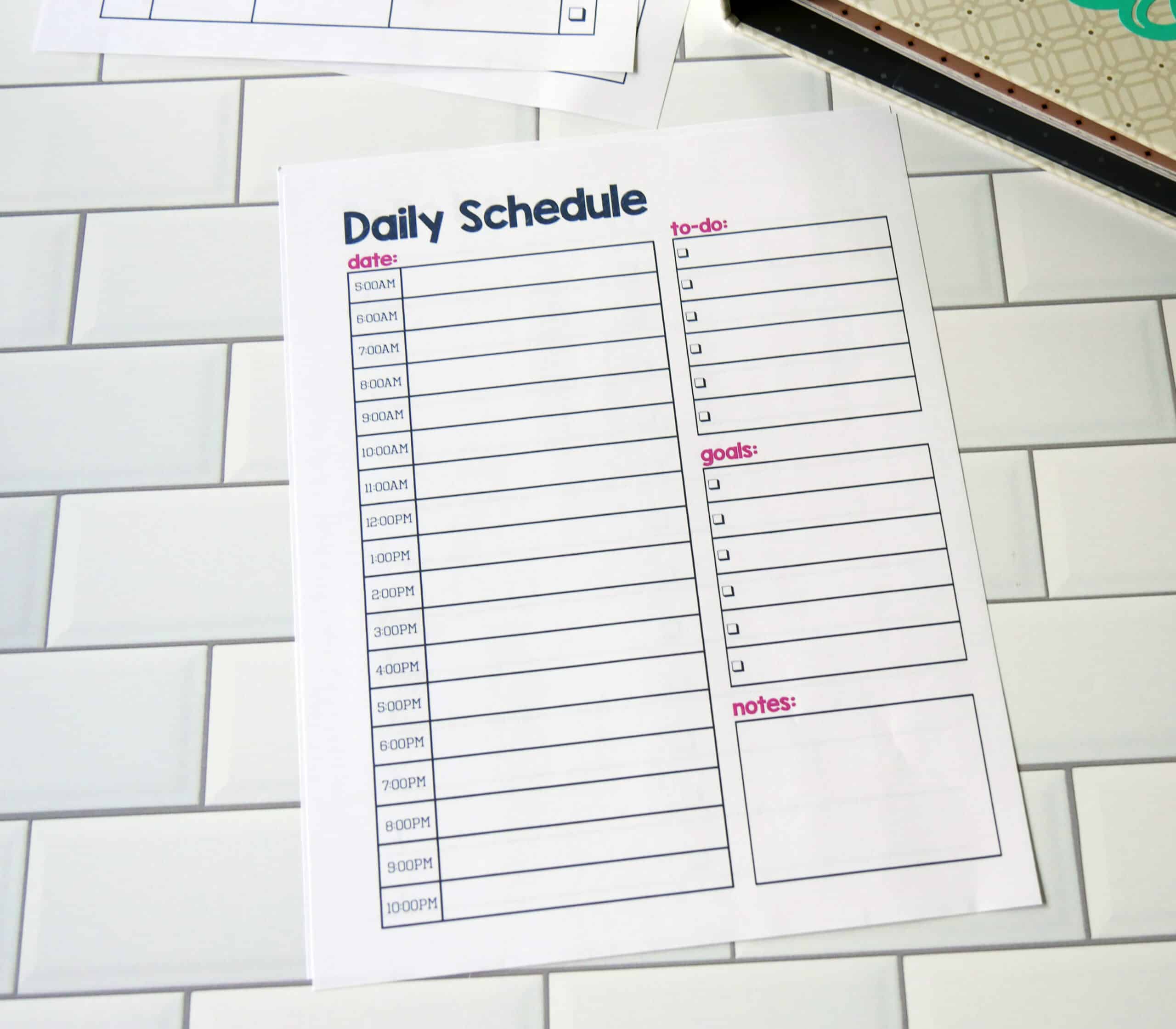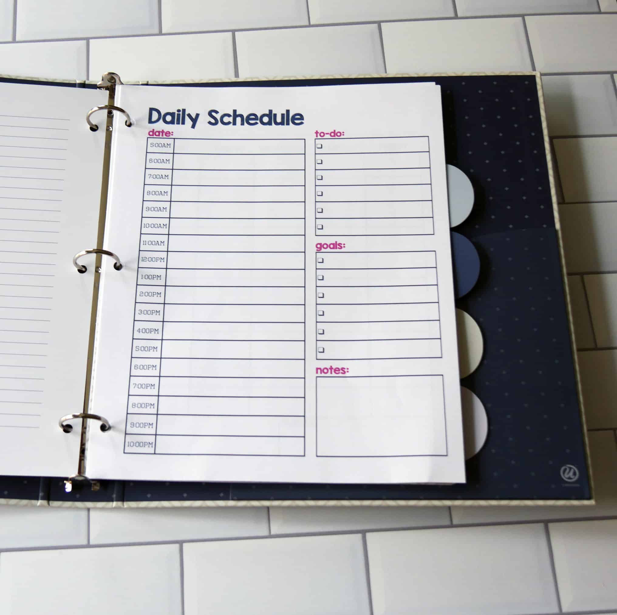You can fill the inside of the planner with any planning pages you like. You can download our free student planner sheets below. They include a daily schedule by the hour (this is great for online public school!), a weekly planner, a to-do list (great for chores), an assignment tracker, and a test tracker.