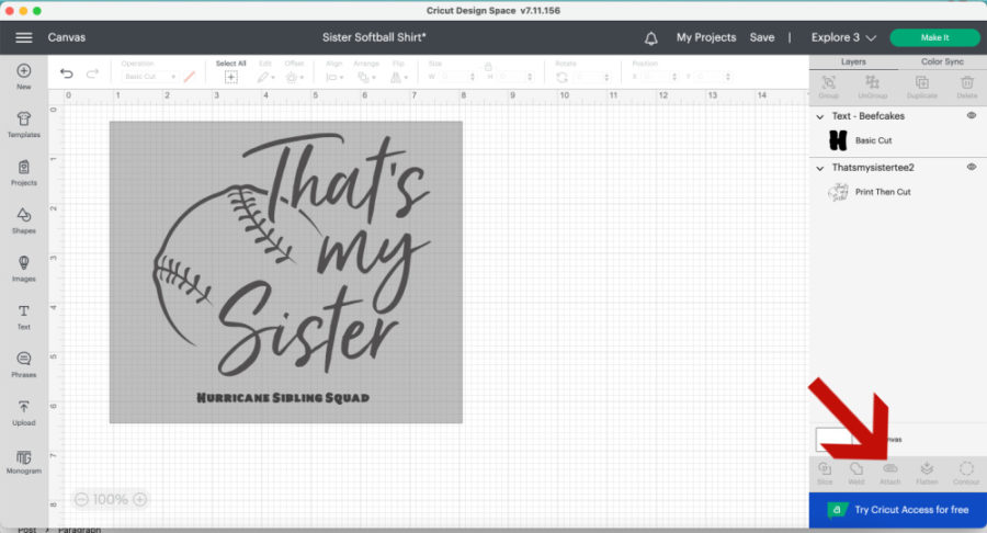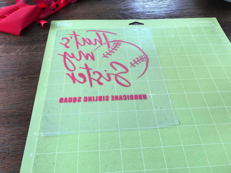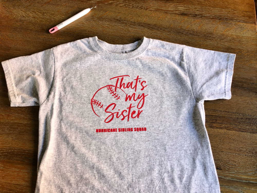 You can add the team name where it says “Hurricane Sibling Squad” or you can hide that when cutting. If adding the name, make sure to highlight both the name and the design together with your mouse. Then attach them so they cut as the same design.