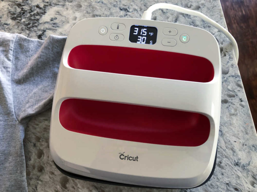 Turn on your heat-press to the correct temperate and time settings as found in the Cricut Heat Guide. We used Everyday Iron-On and a 100% cotton shirt and used an EasyPress 2 at 315 degrees. Preheat the shirt as instructed. Ours was 5 seconds.