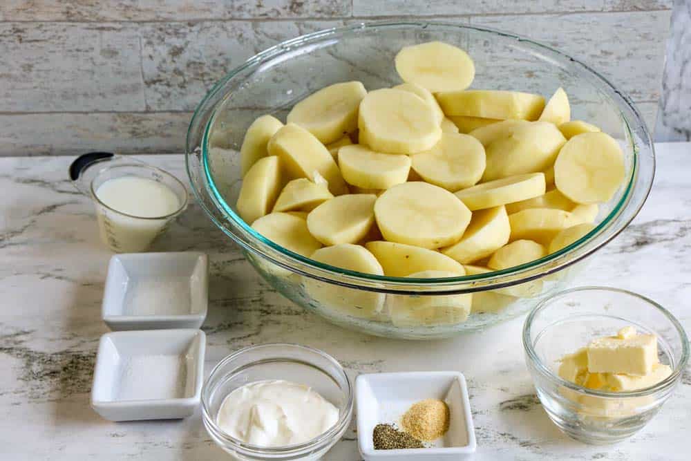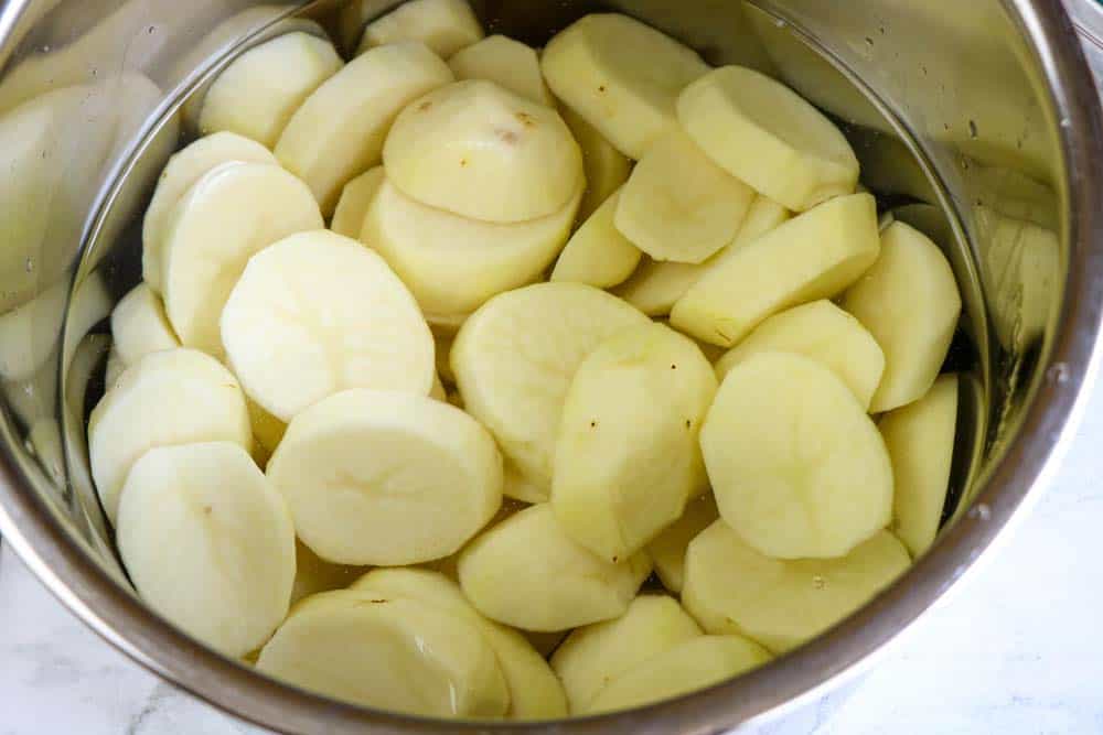 - 5 pounds potatoes scrubbed, peeled, and sliced into chunks