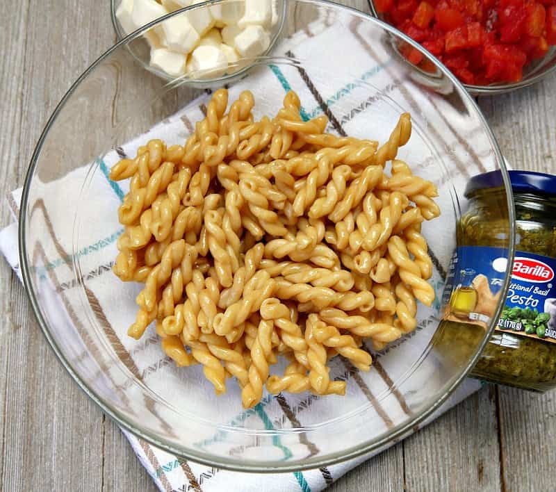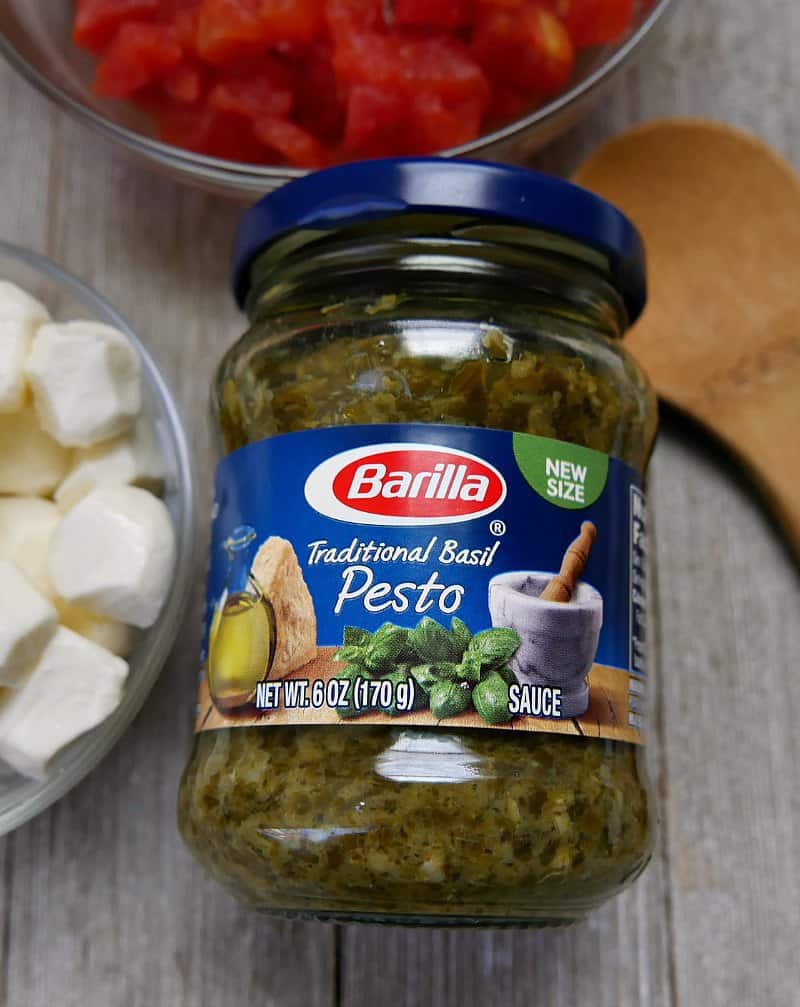 One of the key ingredients in a caprese salad is fresh basil. Use Barilla Traditional Basil Pesto for the basil the pasta salad version.