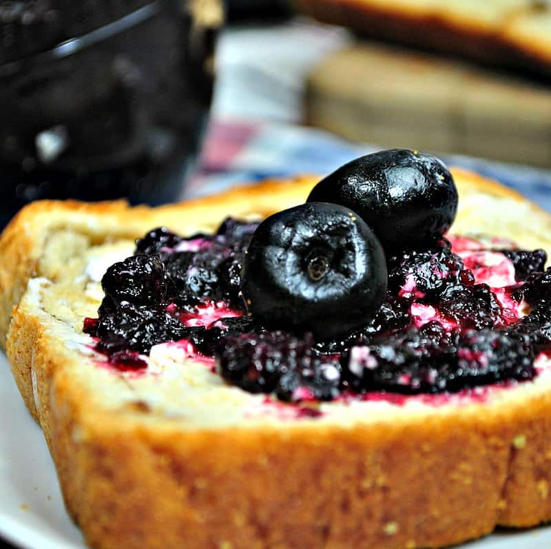 Make a simple homemade blueberry jam with this easy Instant Pot jam recipe. No pectin is needed to make this five ingredient blueberry jam that’s ready in about 10 minutes.