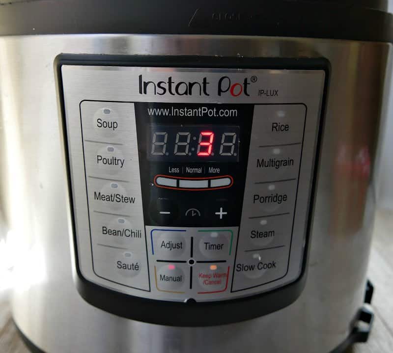 Select Manual and press the arrows for 3 minutes cook time. The pressure cooker will come to pressure first. Then it will cook for 3 minutes so this step takes more than just 3 minutes.