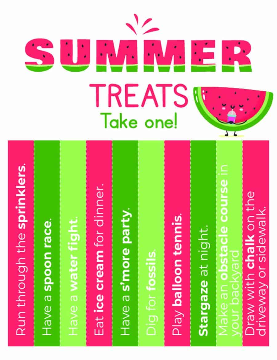 Summer can’t be all about rules, though. You also need some family treats. Again, you can use our pre-made treats or create your own. Change the treats each week.