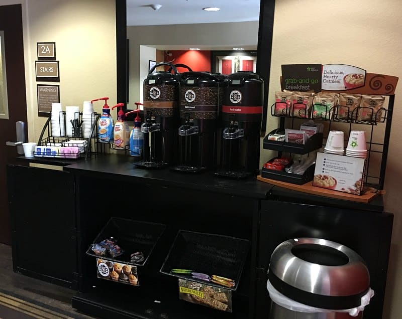 ESA also offers a coffee maker for your room, but we found the grab and go breakfast also had coffee so we just grabbed that. The bar also offers granola bars, muffins, and hot chocolate, which is a hit with kids.