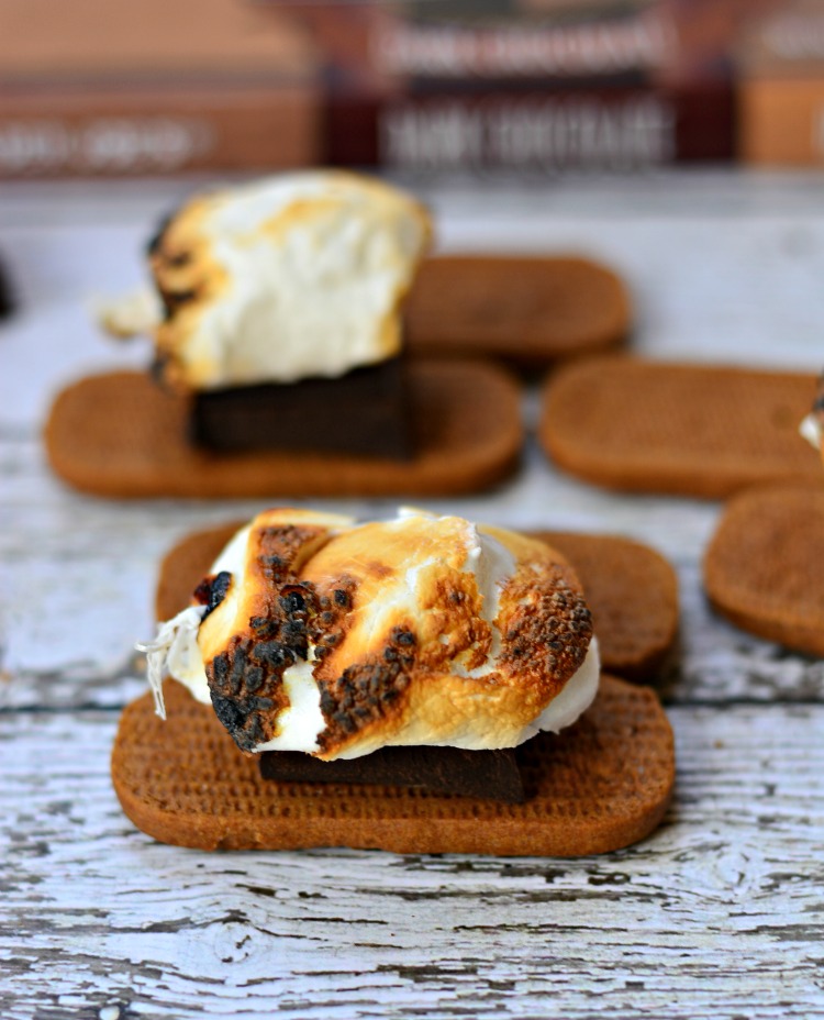 You know what to do once you have your Belgian chocolate and Speculoos cookies. I always set up the cookies and chocolate first so they are ready for the perfectly puffed and roasted marshmallows.
