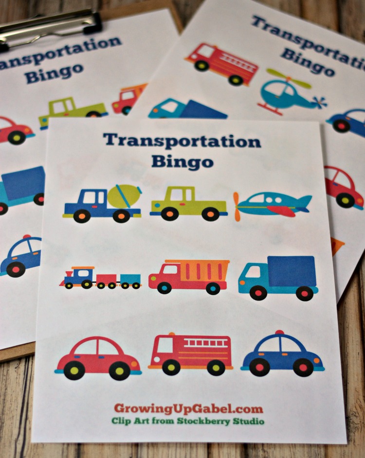 Car games help kids occupied on long (or short) road trips! This free printable bingo game will be a hit with little boys as they keep an eye peeled to find the cars, trains, trucks and airplanes on their bingo cards.