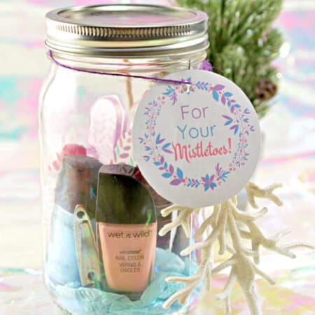 Homemade Christmas gifts are so much fun to make and give. They don’t have to be complicated. Candy Cane Peppermint Bath Salts are made by coloring some salt, adding essential oils, and then layering it all together in a little jar. Add our free tag and it’s a cute and easy gift.