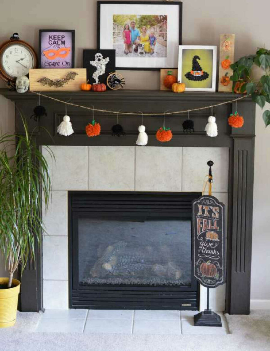 Dress up your mantle, or any part of your home, with an easy Halloween garland made with yarn, twine, and pipe cleaners. It is an inexpensive craft project easy enough for kids.