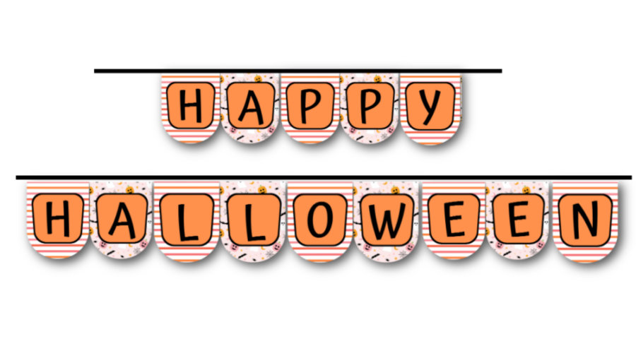 This cute printable Happy Halloween bunting is a great way to welcome your guests to the party. It matches the place cards, which could also be used to decorate tables.