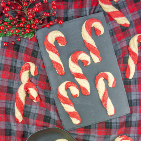 Holding the cookie on the edge, dip about half of the cookie into the white chocolate. Tap off the excess and allow it to drip back into the bowl. Place back on the parchment. Sprinkle with the crushed peppermint candies. Allow the white chocolate to set and harden.