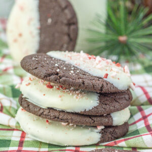 White Chocolate Dipped Chocolate Peppermint Cookies