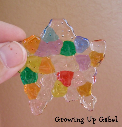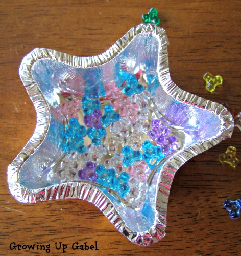 Ok, well, not exactly the nice crisp star I was looking for. It was hard to get the beads in to the nooks of the star so a simple round shape would probably work better. This was super fast, easy and NOT MESSY! Plus you get a craft that you can actually keep around for a while or give away. These would make great Mother’s Day gifts!