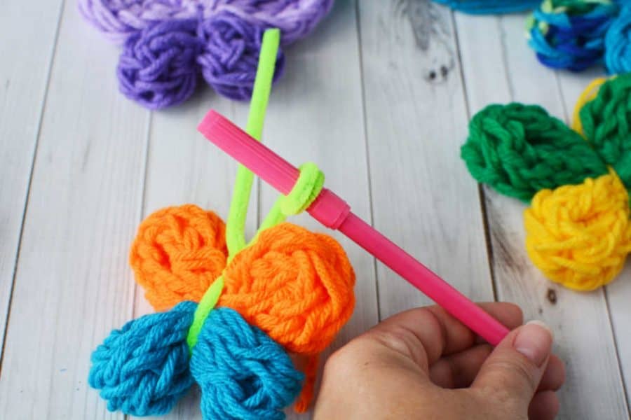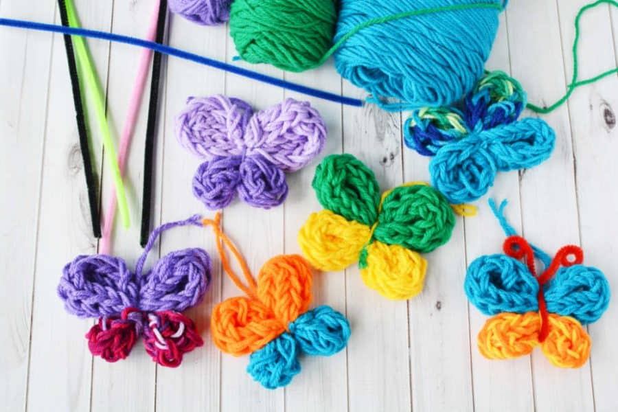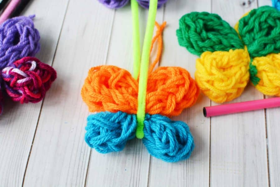Use yarn and your fingers to make this fun finger knitting butterfly. Choose any color you like and get crafting.