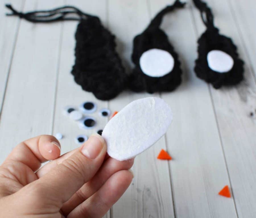 - Cut out a small round piece of white felt for the belly of the penguin.