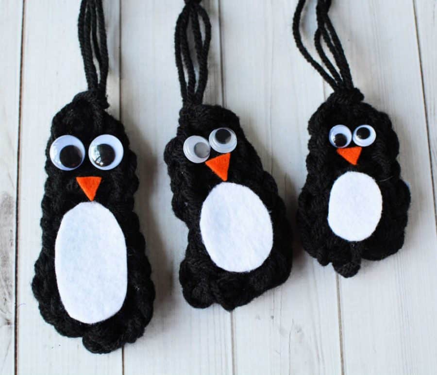 Make finger knitting animals with this easy penguin finger knitting tutorial!