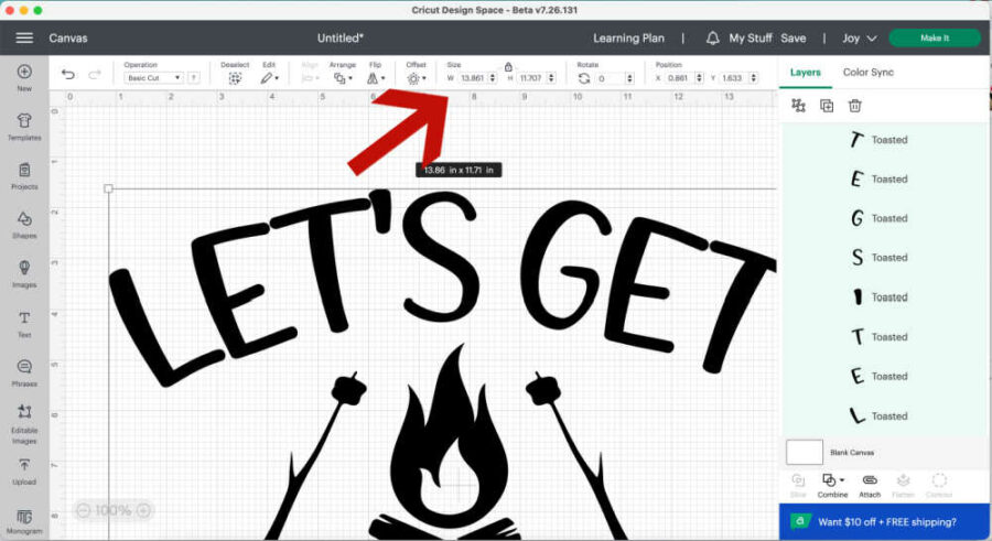The can koozies we used are about 4″ wide. We sized the SVG down to 3″ for this project.